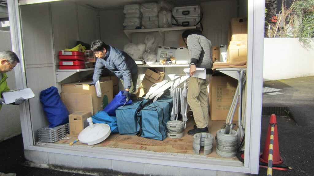 2025年度「防災備品・用品の棚卸」の記録写真です。