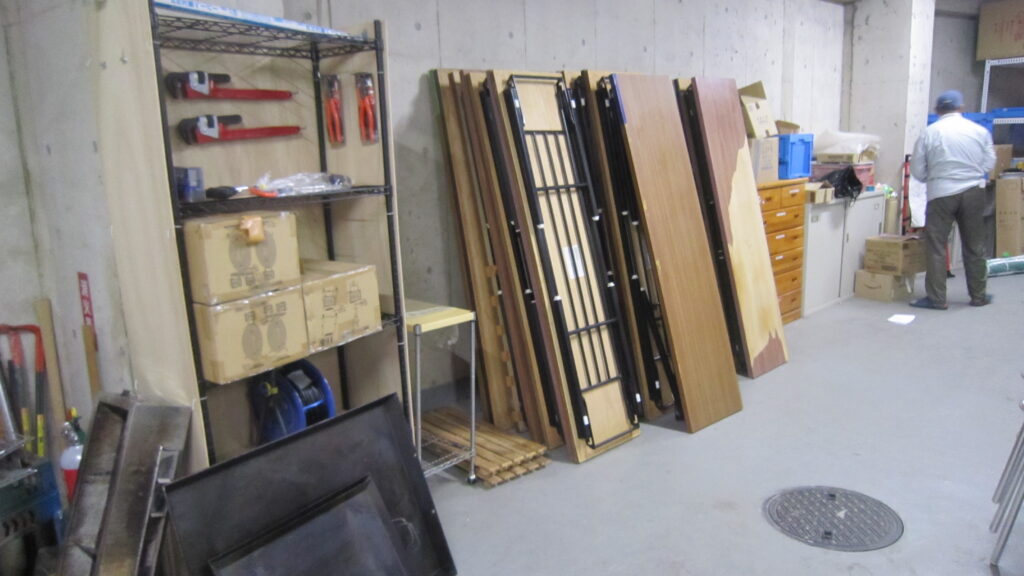 メーカが1社撤退したので、そのスペースを暫定的保管場所として活用しています。