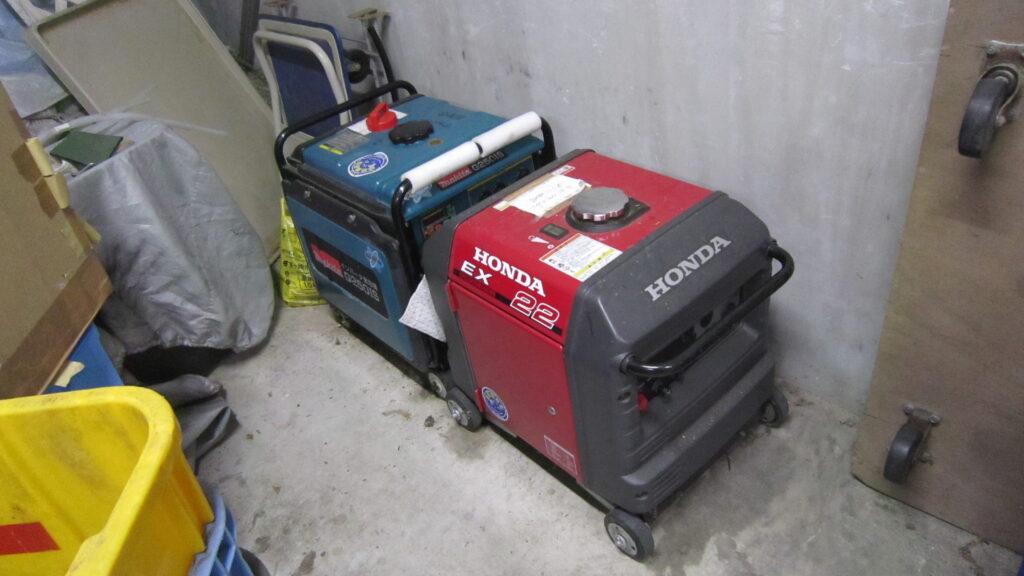 発電機はガソリンエンジンタイプが2台あり、地上のゴミ倉庫に保管されています。