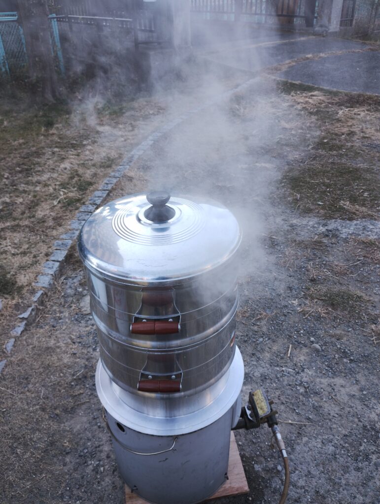 まずはもち米を蒸かすところから…